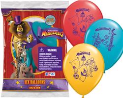Our Madagascar printed latex balloons are 12 inches wide and sold in packs of six.