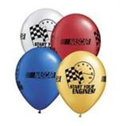 Our Nascar printed latex balloons are 12 inches wide and sold in packs of six.