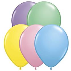 Our Pastel Assorted latex balloons are 11 inches wide and sold in packs of 50.