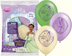 Our Princess & the Frog printed latex balloons are 12 inches wide and sold in packs of six.